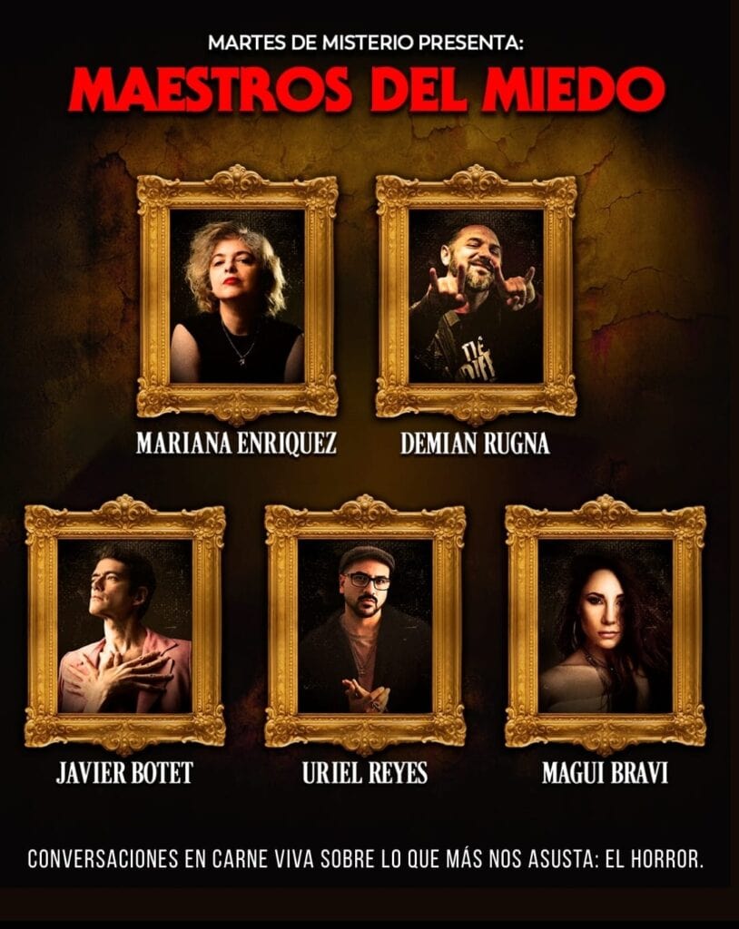 ¿Quiénes son los Maestros del Miedo? Mariana Enriquez (Argentina), considerada la reina del terror y la escritora más influyente del género en la actualidad; Demián Rugna (Argentina), el director que ha revolucionado el cine de terror argentino con obras maestras como Aterrados y Cuando acecha la maldad; Uriel Reyes (México), creador de Relatos de la Noche, el podcast de terror en español más escuchado del mundo; Javier Botet (España), actor que se transformó en leyenda de Hollywood gracias a sus interpretaciones en REC, IT, El conjuro, Slenderman y Mamá; y Magui Bravi (Argentina) la “Scream Queen nacional”, reconocida por ser la actriz con más películas de horror filmadas en su país.